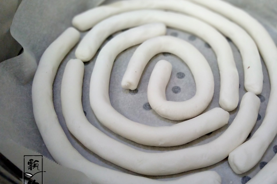 5、米粉小面团用双手,指腹部位,从中间往两边搓成细长条,动作要轻柔,搓得要表面光滑。