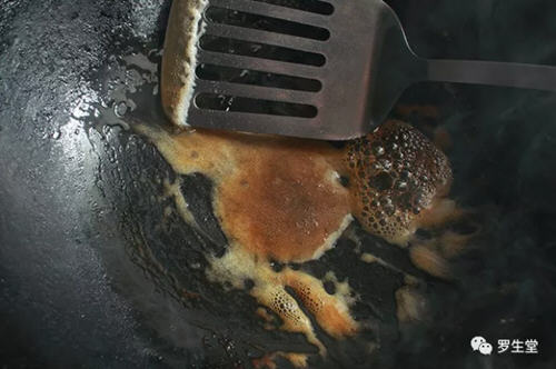 3、如果光用腐乳,颜色会太浅,所以要炒少许的糖色,不能太多,不然会太甜了。