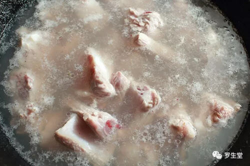 2、排骨冷水下锅,大火烧开后去净浮沫