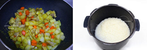 咖喱鸡肉焖饭的做法: