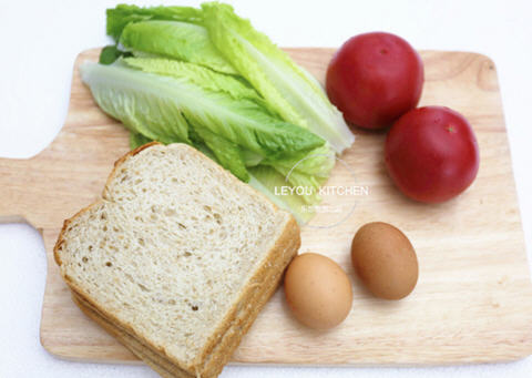 主料:全麦面包4片,鸡蛋2个,西红柿1个,生菜少许