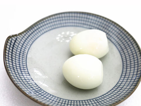 2、把鸡蛋凉水放入锅中,水沸后再煮5-6分钟,直到鸡蛋全熟,然后捞出把蛋皮剥掉。