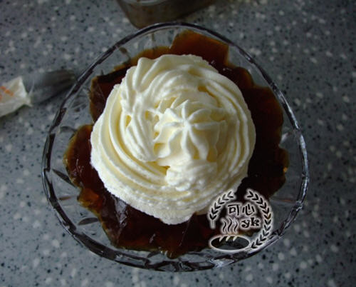 9、在咖啡冻上挤上淡奶油