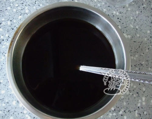3、将250克咖啡液倒入盆中,搅拌到糖溶化。