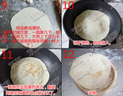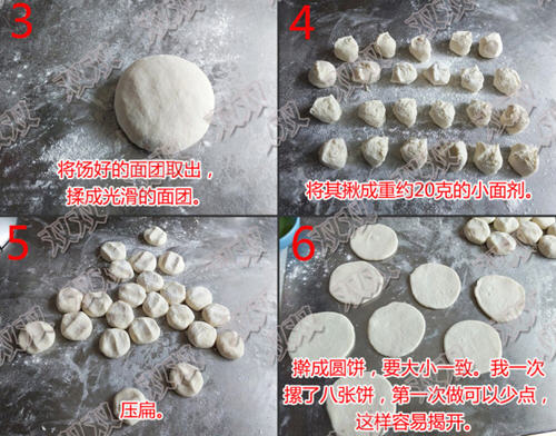 (擀时候注意,一 面擀几下, 翻过来,在擀几下,不然上下受力不一样,就不能做到每张饼都一样大了。