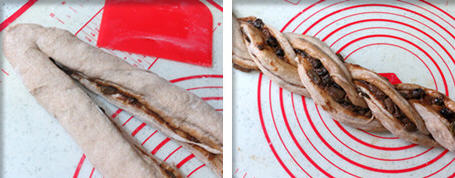 14、两股面团交叉拧成麻花状,注意将切面朝外