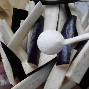 ( 腌制茄子的时候盐少放一点,作用在于让做好的茄子保持紫色 )