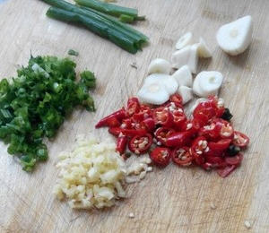 6、姜蒜辣椒葱切好备用