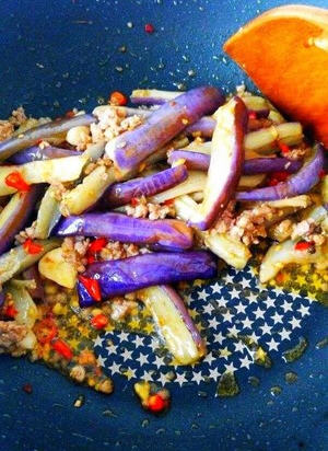 红烧肉沫茄子的家常做法: