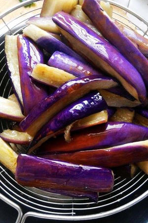 9、炸软的茄子捞起来备用。