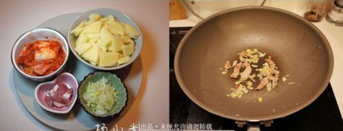 正宗的辣白菜炒土豆片的做法: