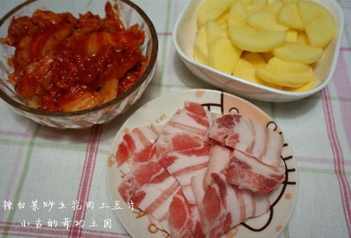 辣白菜炒土豆片五花肉的做法:
