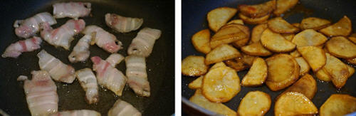 2、这道菜的土豆片应该是炸的,不过我不太喜欢油大的食物,所以把炸改成了煎,一样的好吃,而且低油低热量。