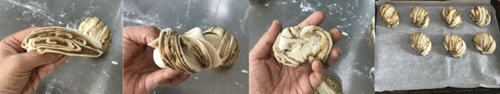 2、揪掉的底部多余部分小面团不要浪费,最后全部混合在一起重新擀成一片,卷起做一个大花卷即可,外观不好看一样好吃。