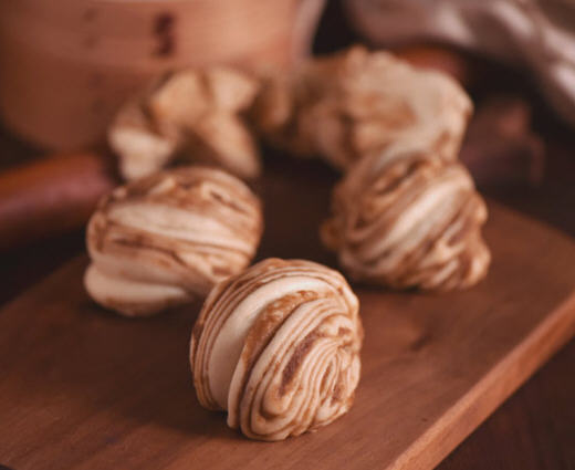这款红糖麻酱花卷采用选用100%纯芝麻酱做的,花卷个头蛮大,外形层次分明,用麻酱和白糖调味恰到好处,除了红糖外还放了些许的粗粒白砂糖,这样就有了这高温蒸汽下要化开还未化开的白糖颗粒感,一口下去,面食的小麦香混合着麻酱的绵密还有时不时的咯吱嚼劲,非常好吃。