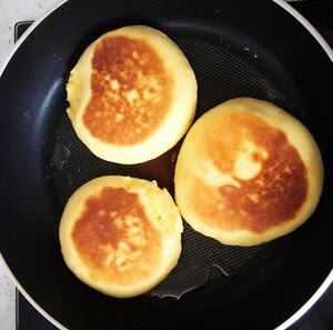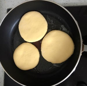 2、我用的平底锅当然也可以用电饼铛,我家电饼铛烙出的饼不发起口感偏硬;