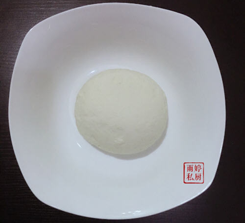 此次将发好的面,反复揉和二百下左右,目的是挤出面里的气泡,面会越和越光滑均匀。