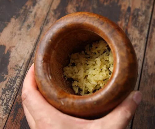 2、姜一定要去皮,如果不方便就直接剁成茸也可以直接用,但是捣烂了味道更突出。
