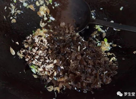 2、香菇和木耳一定要和虾皮炒一下会更香,尤其是香菇要炒一下。