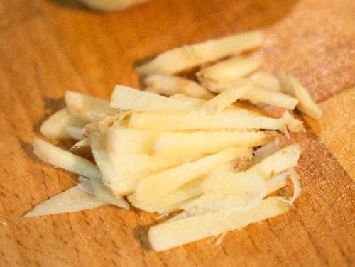 3、然后放入切的生姜丝,大概煮3~5分钟。