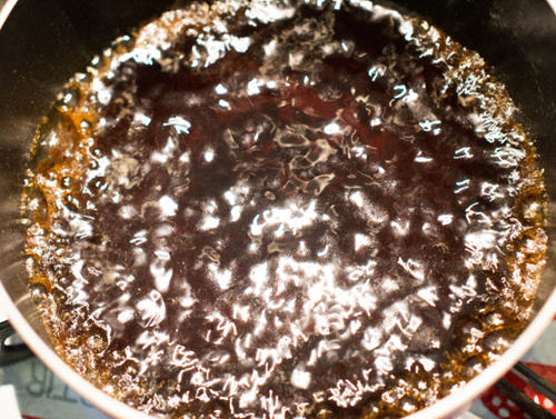 2、将调味料(酱油、味醂、砂糖3、料理酒)一起放入锅中煮沸。
