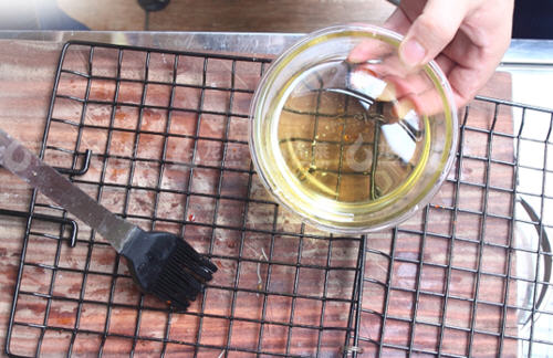 2、先在烤网上刷上一层食用油,目的:防止在烧烤过程中与韭菜粘上