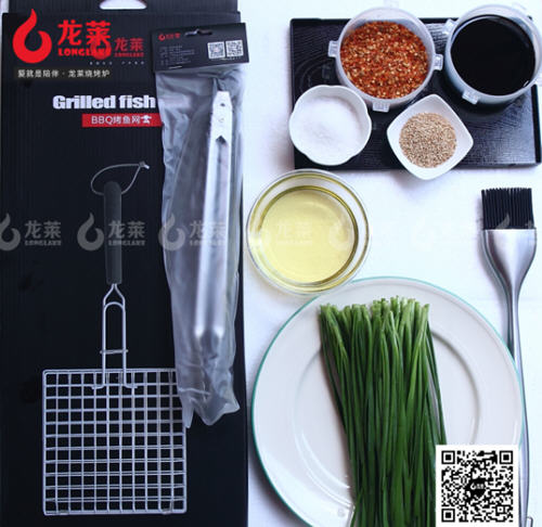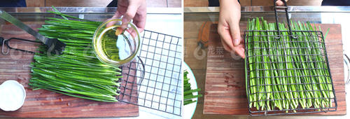 3、在烤鱼网上刷上薄薄一层油,可以有效延长烤鱼网的使用寿命和不让韭菜粘贴到烤网上。