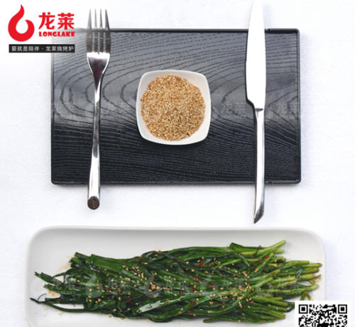 最后取出烤鱼网,将韭菜取出入盘,在表面均匀撒上芝麻,即可食用。