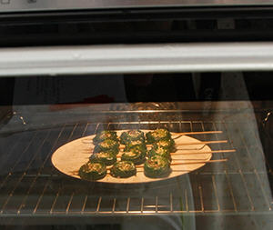 6、烤箱预热190度,将韭菜卷放入,3分钟即可。如果没熟继续加烤2分钟。