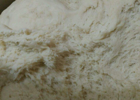 2、盖上保鲜膜,醒发至两倍大。醒发好的面团会有均匀的蜂窝状,蜂窝状越多,说明面发的越好。