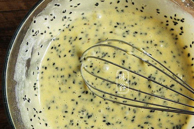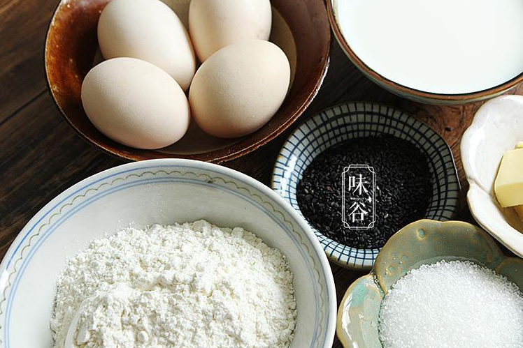 【材料】:面粉100克、鸡蛋4个、黑芝麻15克、白糖50克、黄油40克、牛奶150克