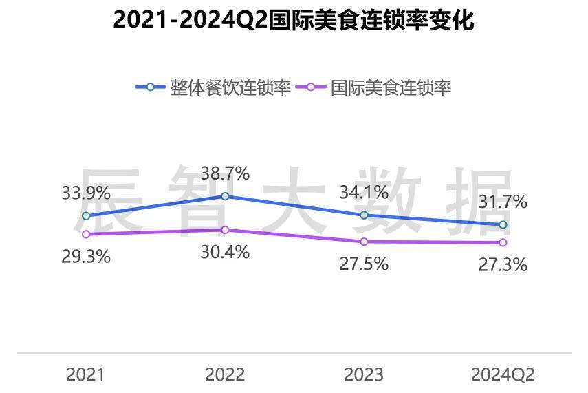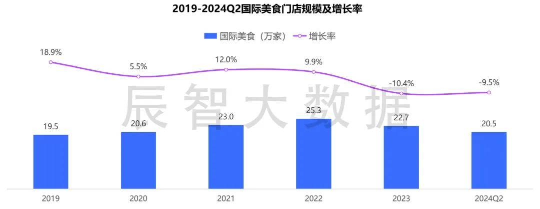 辰智大数据显示,截至2024年第二季度,全国国际美食门店达到20.5万家,较2023年底门店降幅9.5%,为近四年的最低值,国际美食行业出现萎缩迹象。