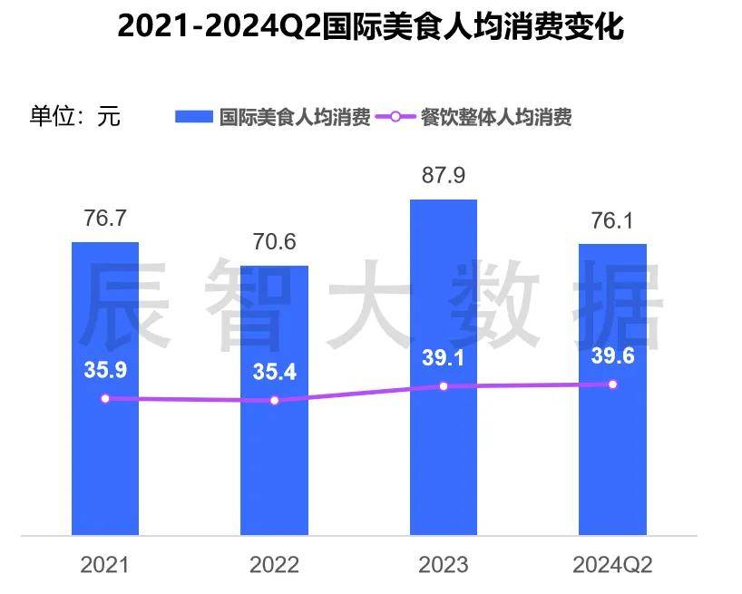 国际美食餐厅人均消费明显高于整体餐饮, 2024Q2人均76.1元,远高于整体39.6元。