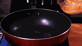 4.平底锅,倒一点油,用筷子夹起来铺在上面,筷子压一下容易成型