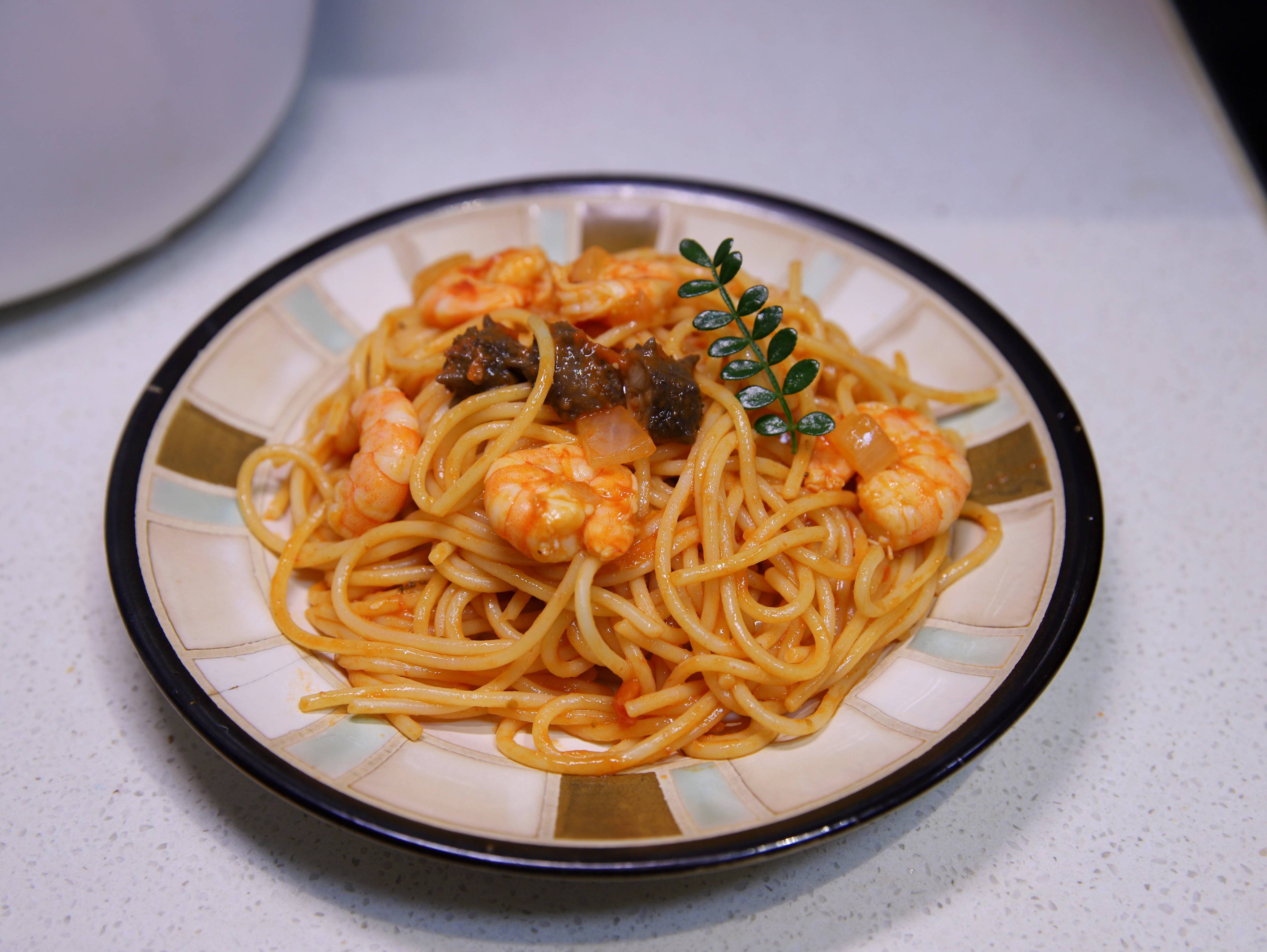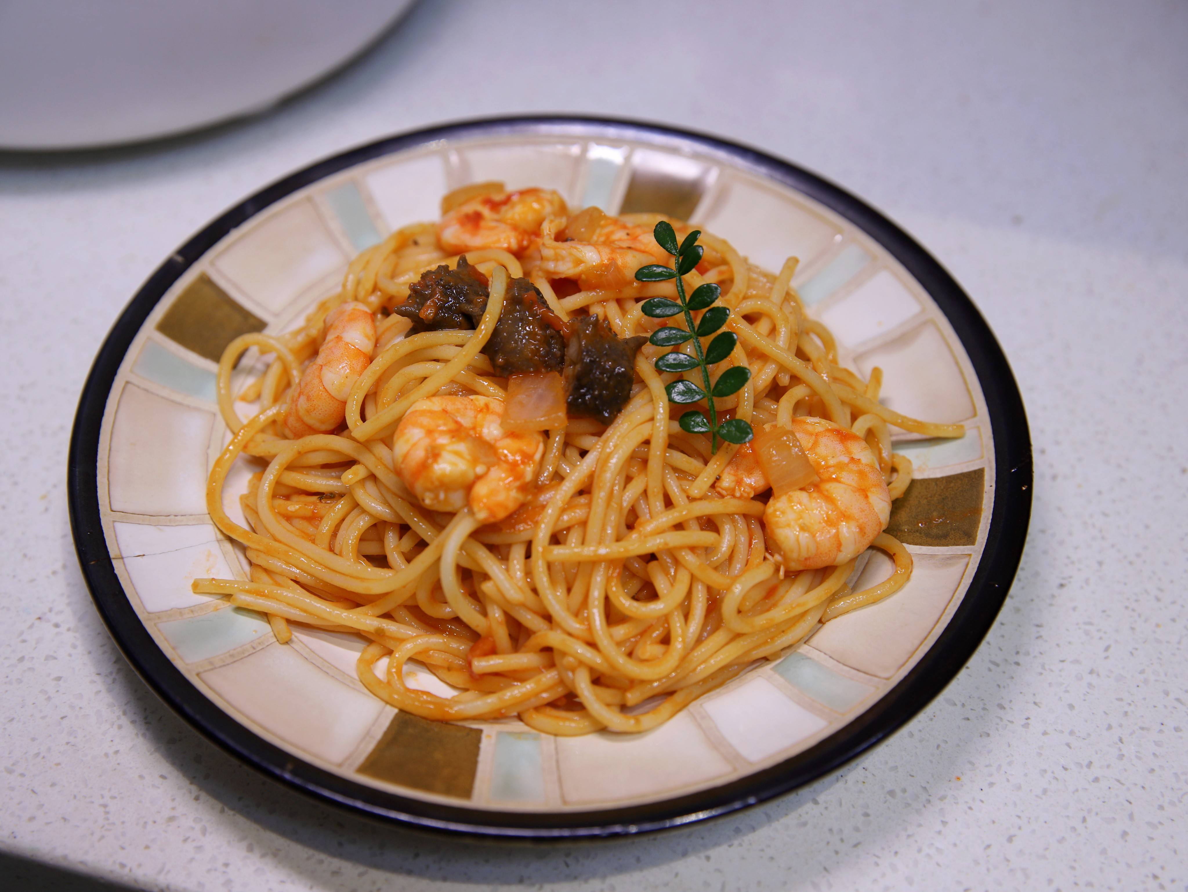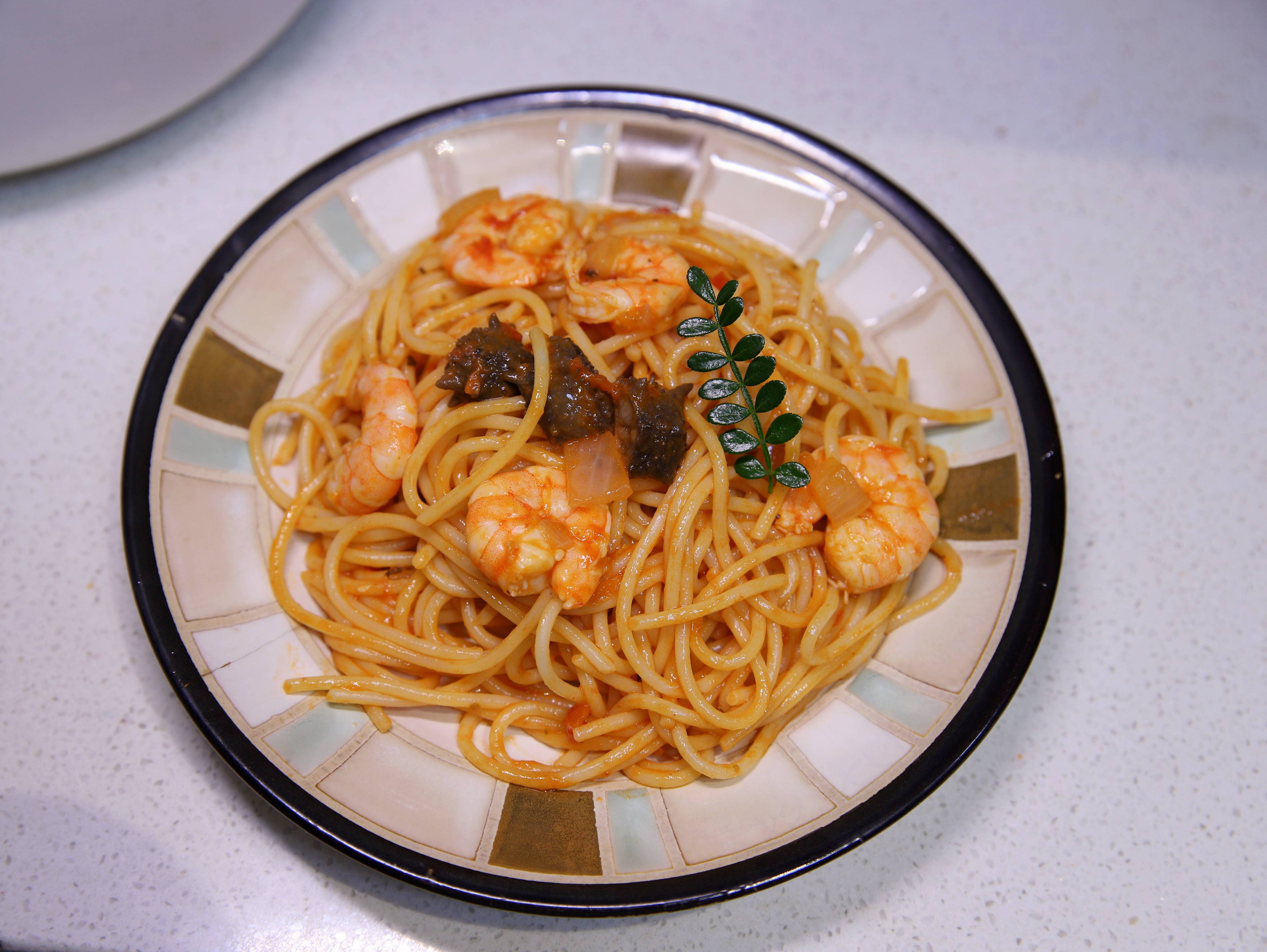 【虾仁海参意大利面】