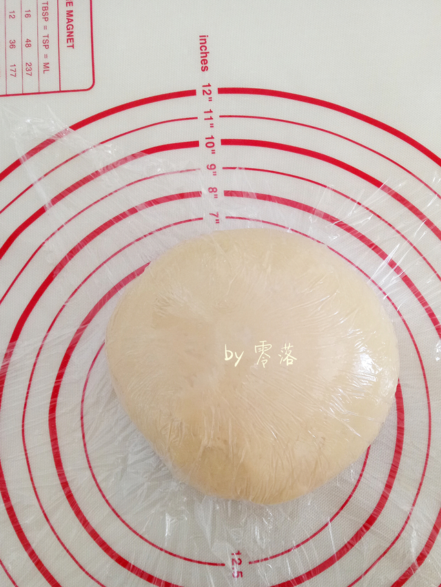 2、揉好的面团,放在揉面垫上,覆盖上保鲜膜,松弛5分钟左右;