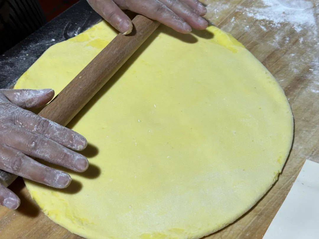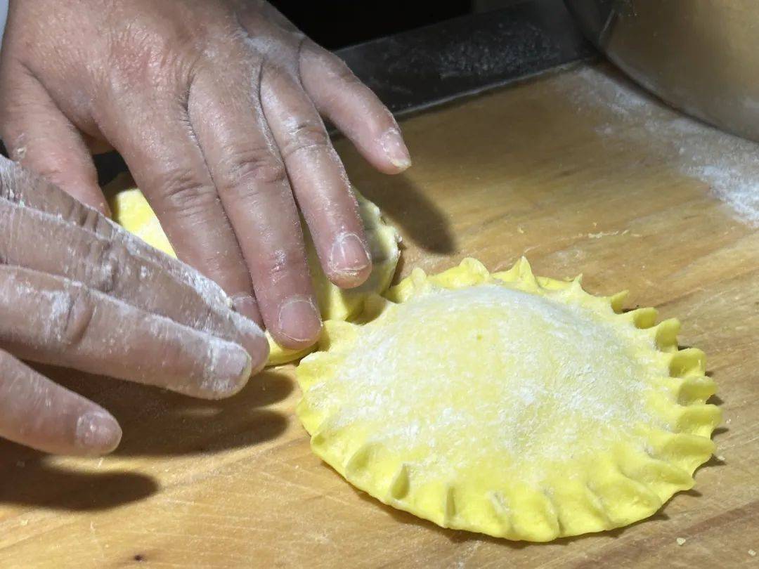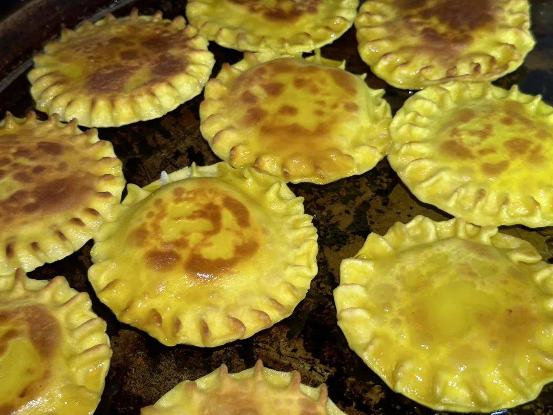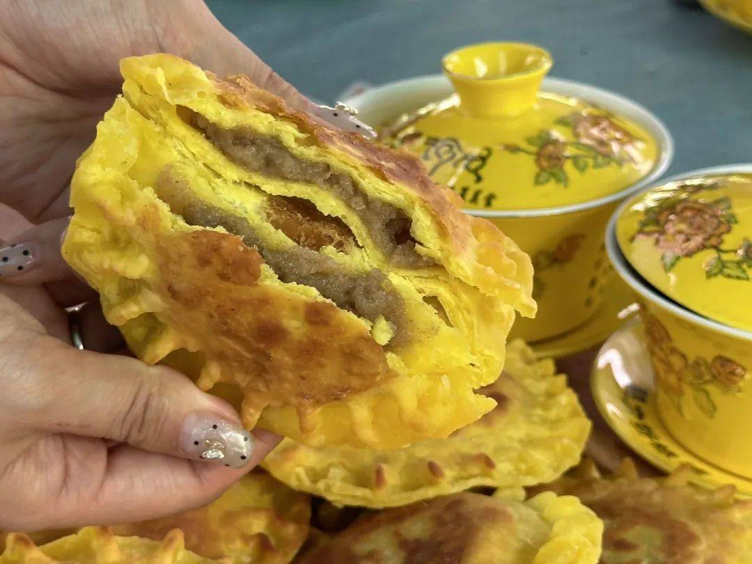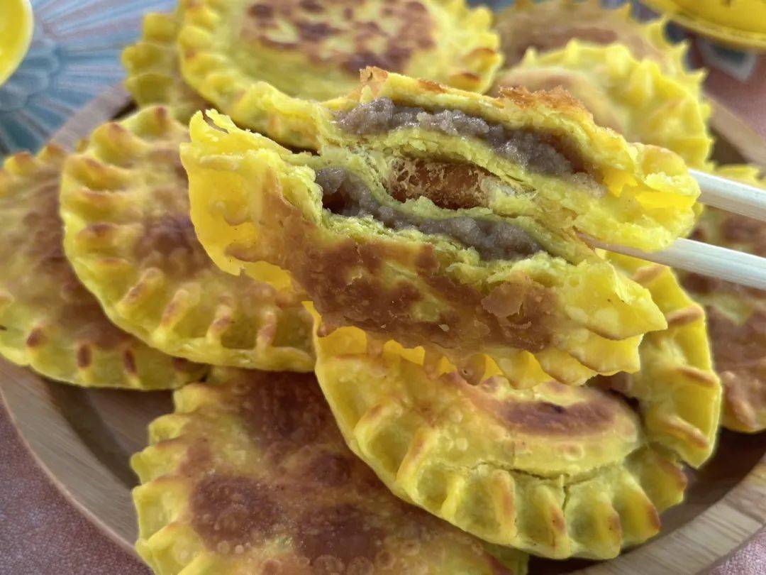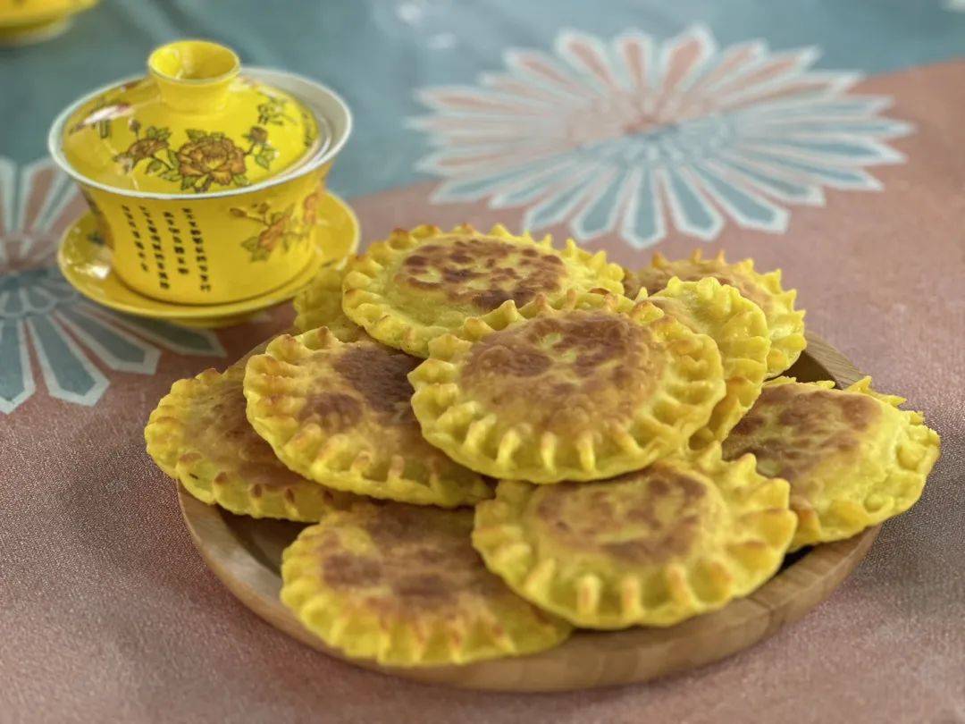 芽面鼓的做法也相当简单,先将少许芽面用开水烫好,再烫稍多点的小麦面,将烫好的芽面当做馅夹在小麦烫面中,烙成一个个小饼就可以了。芽面鼓外皮酥脆,馅料香甜,是非常“治愈”的一道美食。刚出锅的糕点新鲜软嫩,空气中弥漫着谷物特有的甜香,彻底放凉,就慢慢变韧,成为另一种口感的美味。