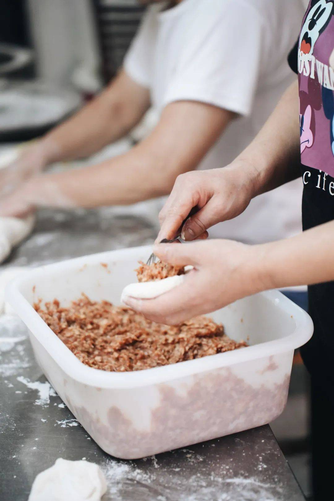 肉馅鲜香丝滑,素馅清香鲜嫩,口口满足的舌尖诚意是家人呵护至极的良苦用心。左手按馅,右手轻柔地捏合面皮,将包口逐渐收紧,一系列动作行云流水,一个个成型漂亮的馒头,跃于眼前。