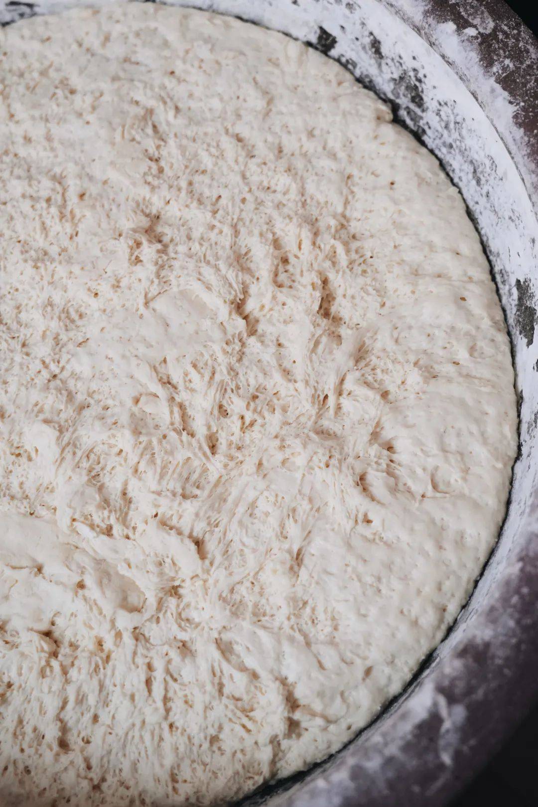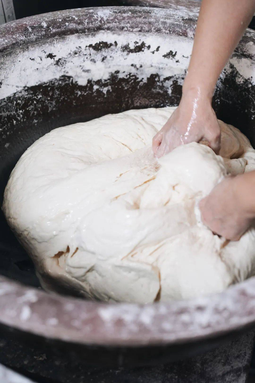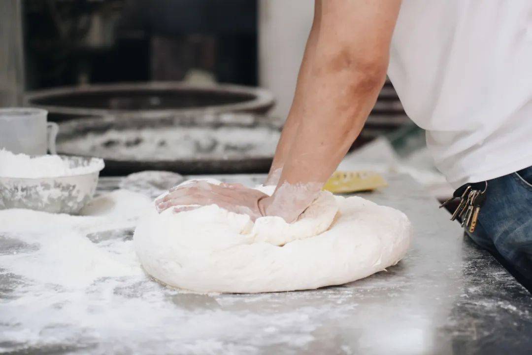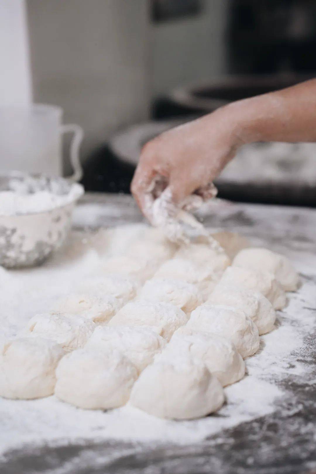 发好的面团满是蜂窝状的气孔状,这也是发面成功的标志。揉面时,在案板上撒些干面粉当做铺面,用力揉搓,将面团中的气泡全部排出,这样蒸出来的馒头才会更加细腻。