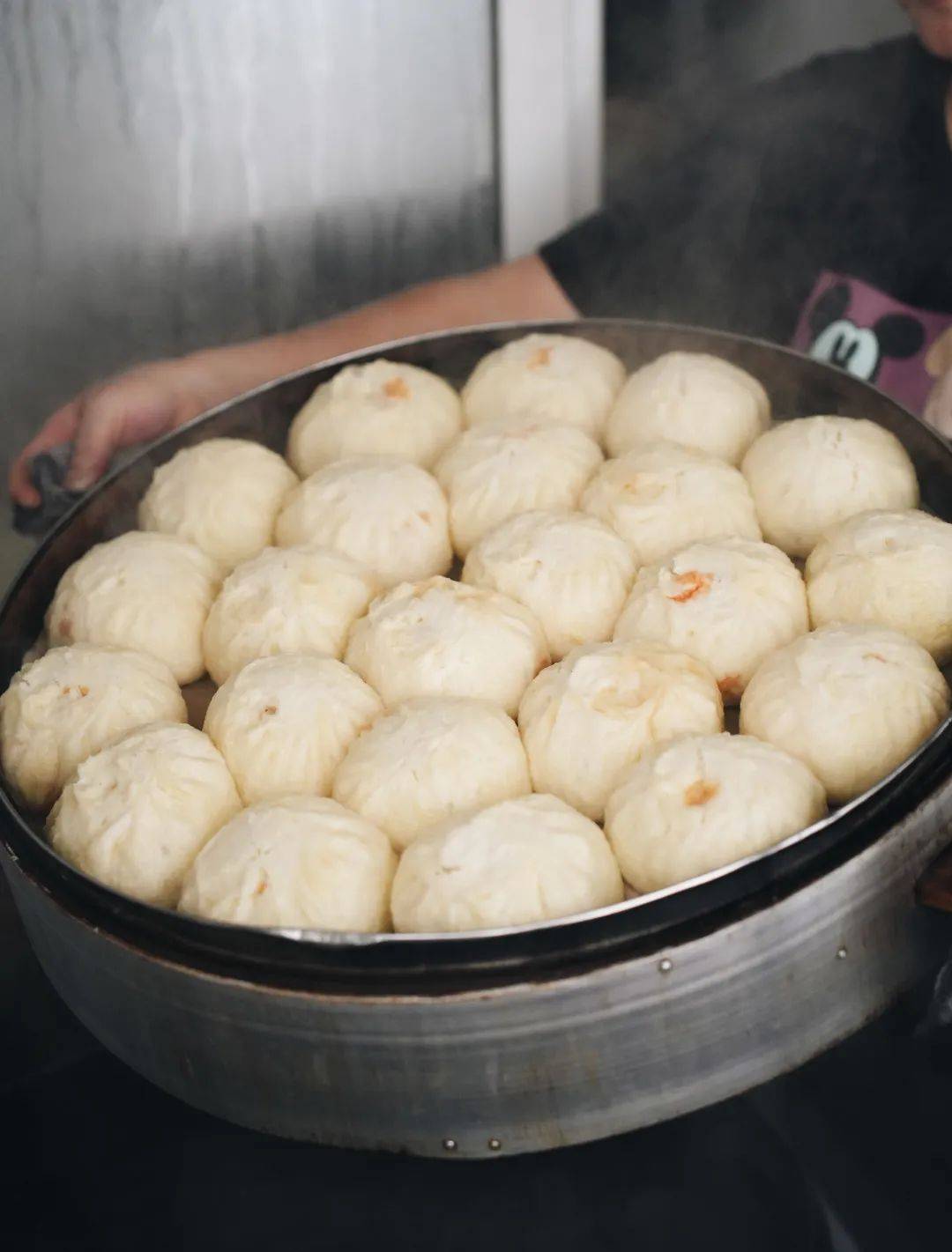 包好的馒头要进行二次饧发,使面粉与酵母第二次充分融合,才会让馒头变得圆润饱满。摆放整齐的馒头上笼,劲道的火力充分激发面与馅料的“灵魂”。