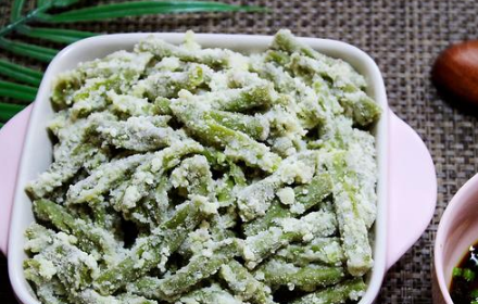 我们赶紧看看妈妈是怎么做的吧!洗净切成寸段,无需晾干水分。加入面粉、玉米面、香油、少许淀粉。这里也可以放点盐,不放也没关系。很多人都只是放了面粉,想要蒸菜做得好吃,必须再放点玉米面,淀粉放一点就可以。主要以面粉和玉米面为主,面粉和玉米面的比例1:1。用手拌匀,让面粉均匀包裹每个豆角。如果觉得面粉不够,就再加点进去。锅内上气,放豆角蒸12-15分钟即可。