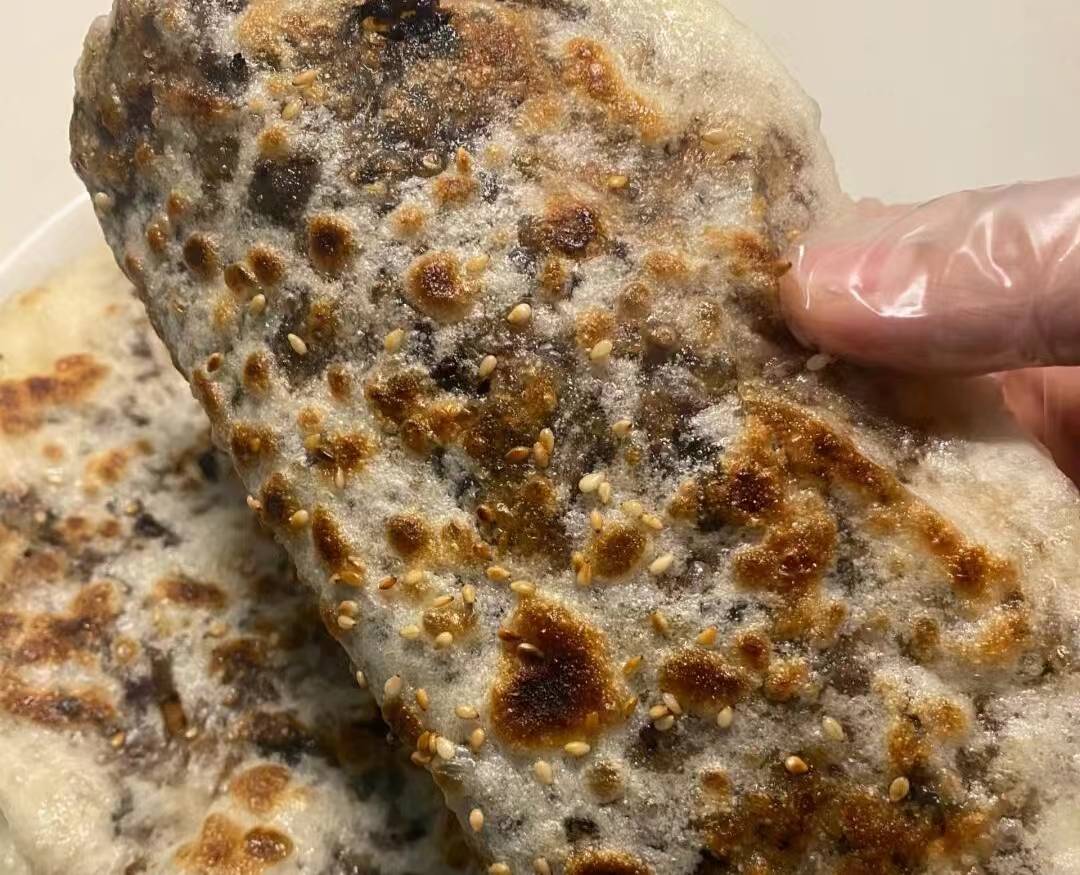 葱花饼,带芝麻的,香上加香。