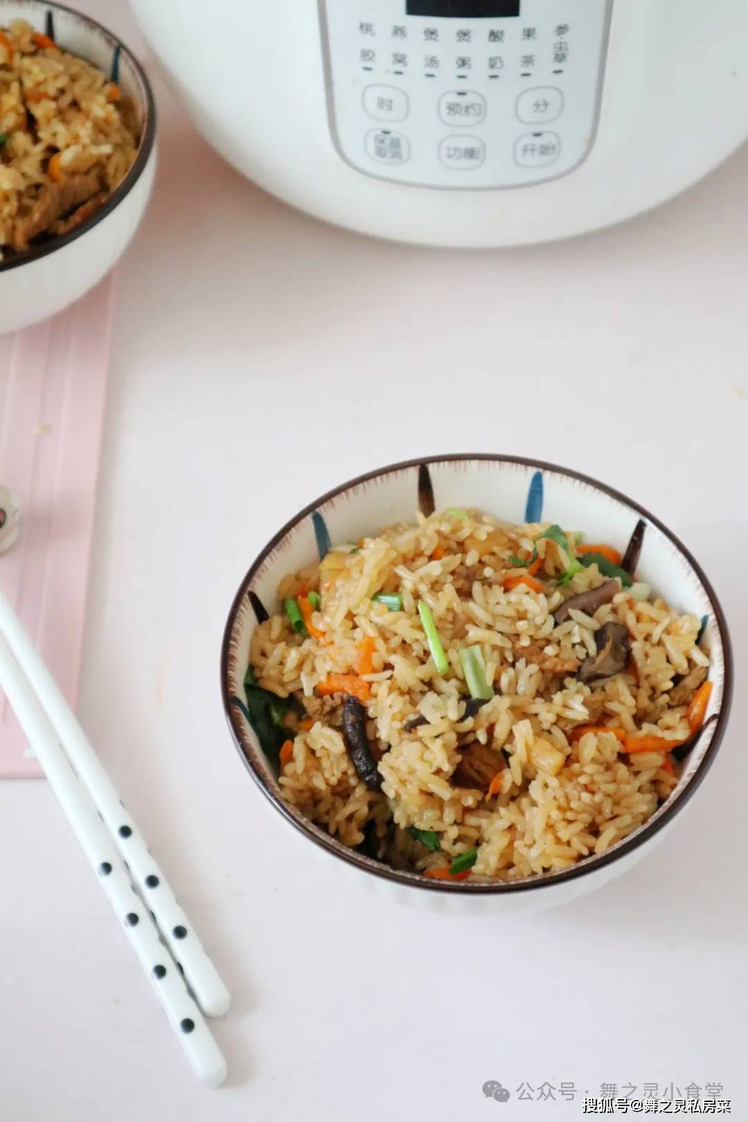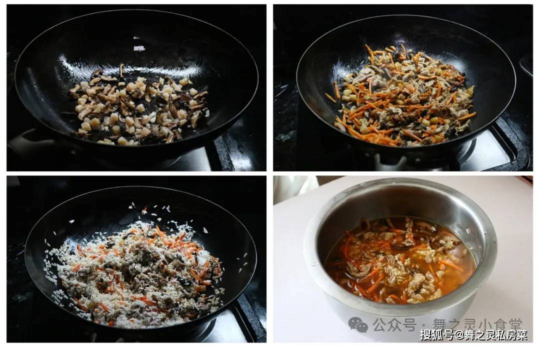 4、焖饭要香食材是要提前翻炒过的。