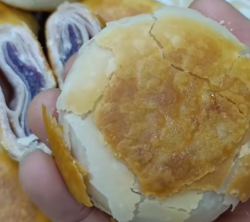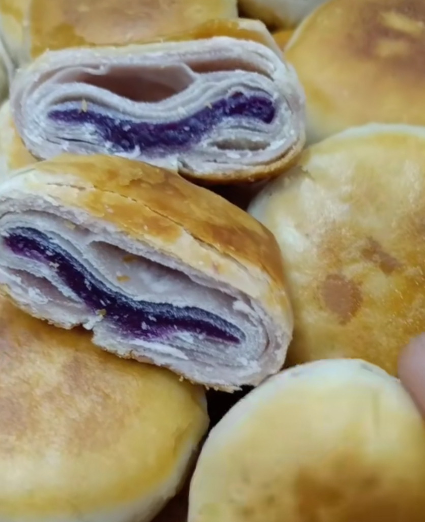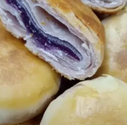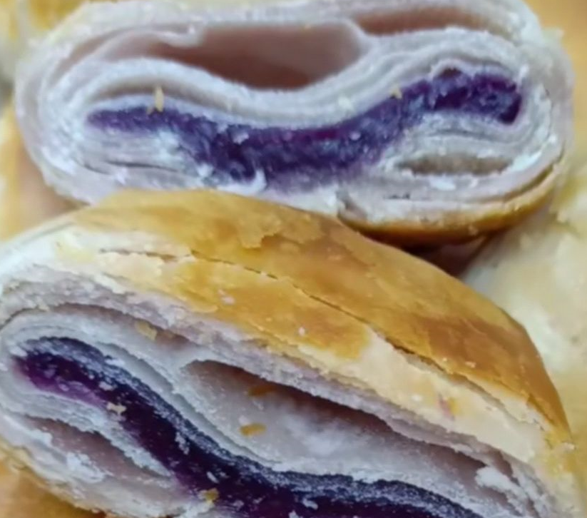 层次丰富,紫薯香甜,切开就可以看到层层酥皮包裹着紫红色的馅,