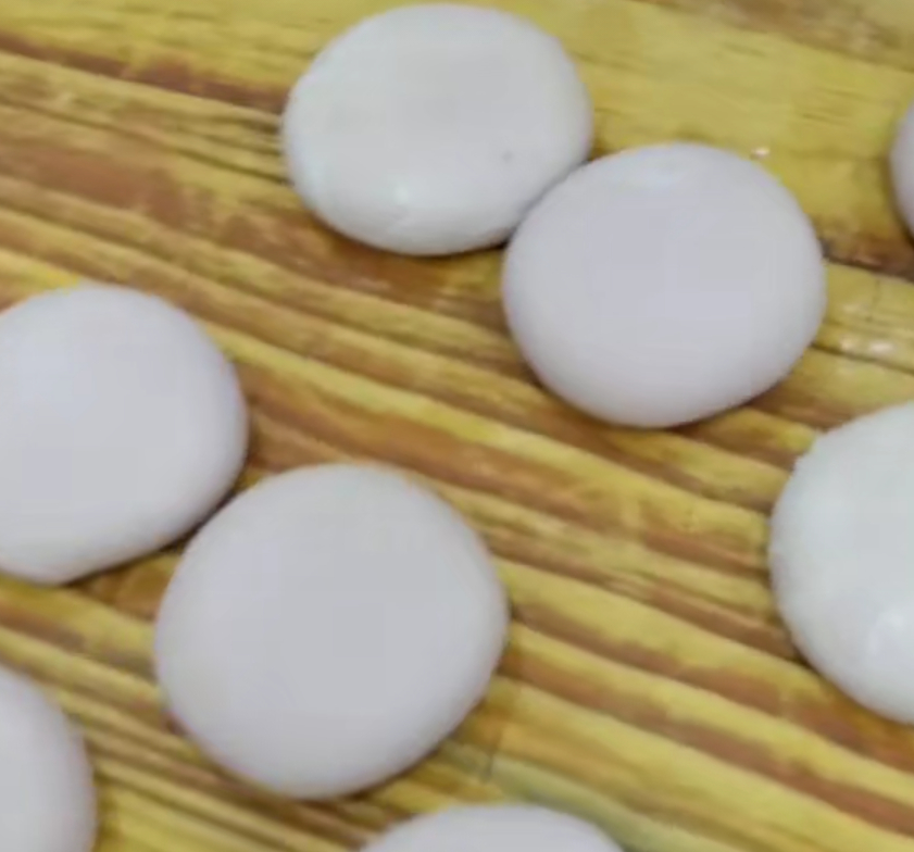 把盘好的饼球用手按扁,整理成大小厚薄均匀的圆饼,按时手上最好涂抹些油好操作。也不会由于饼皮薄而按破或粘连破。