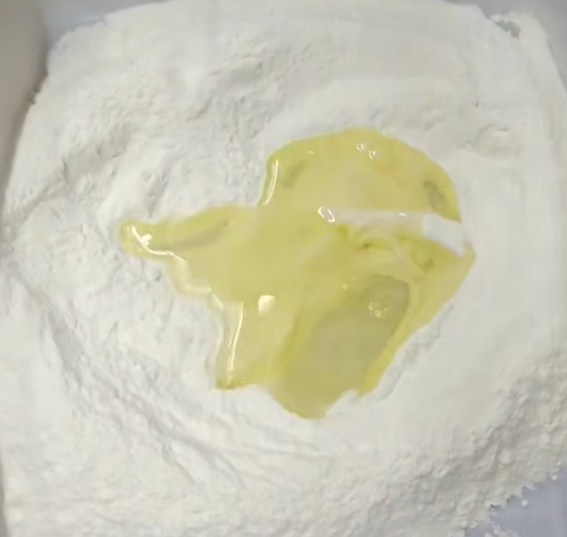 把准备好的食用油放入面粉中,