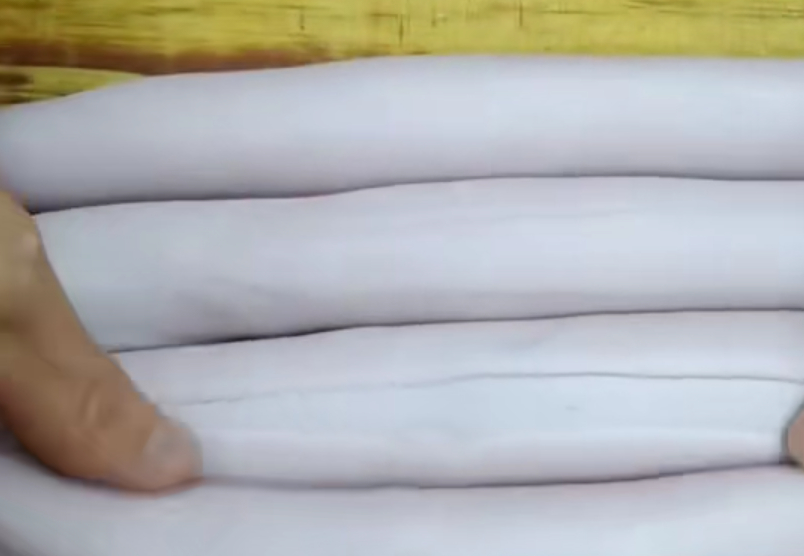 按扁再竖着擀成擀宽,擀成长条,