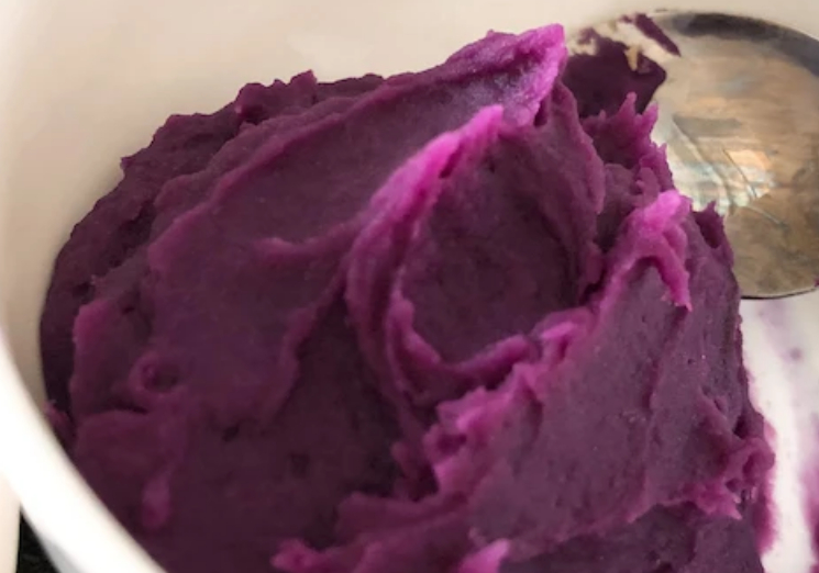 (紫薯一般水分少,比较干,牛奶调和紫薯泥用,没有也可用水,放牛奶会更香更好吃。)