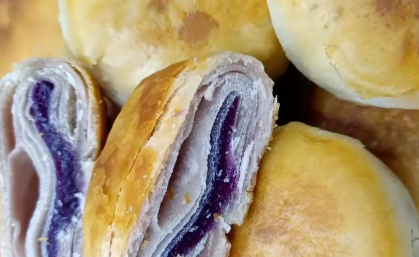 紫薯别再蒸着吃了,加上一碗面粉教你做紫薯酥饼,金黄酥脆,层层掉渣,香甜可口,不用烤箱也直掉渣,太好吃太赞了。想吃不用出去买了,学会自己在家做,省钱又健康。