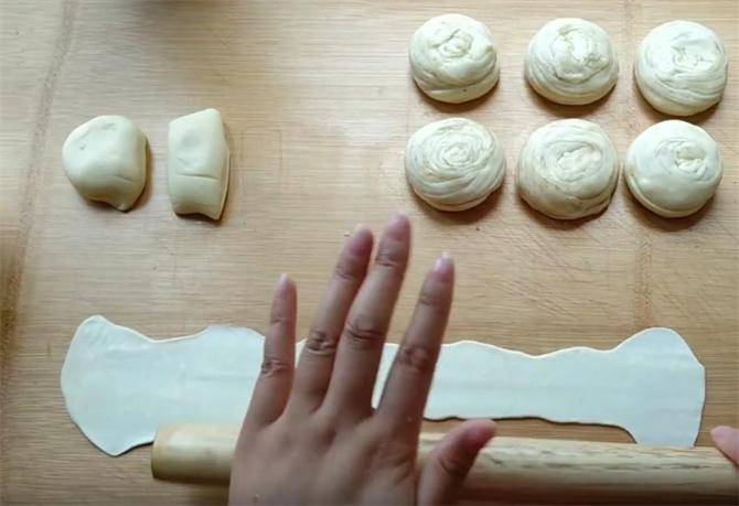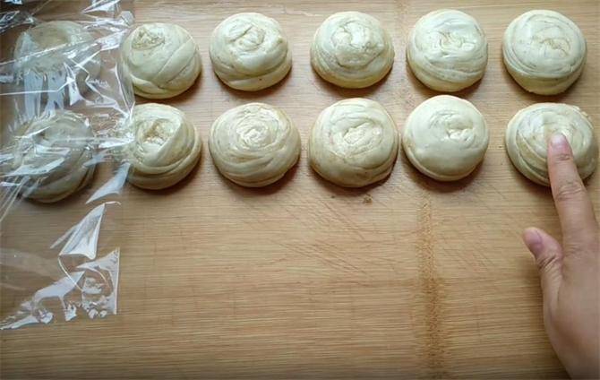 9.做这个油酥烧饼只需要大家注意一点,就是做好的饼坯一定要经过二次松弛,这样才容易擀开,而且饼的层次薄,饼才会外酥里软。